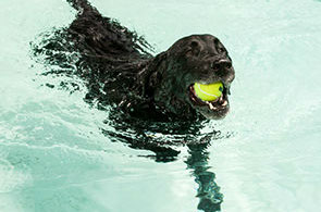 During the day our guests can go in and out as they please and at night they sleep in their indoor sections which are temperature controlled. We have two play yards with doggie playground equipment and a large swimming pool that was originally built for humans but has literally gone to the dogs for their enjoyment to swim or sun bathe. We also have a gated front lawn which is used for those guests that will only potty on grass.